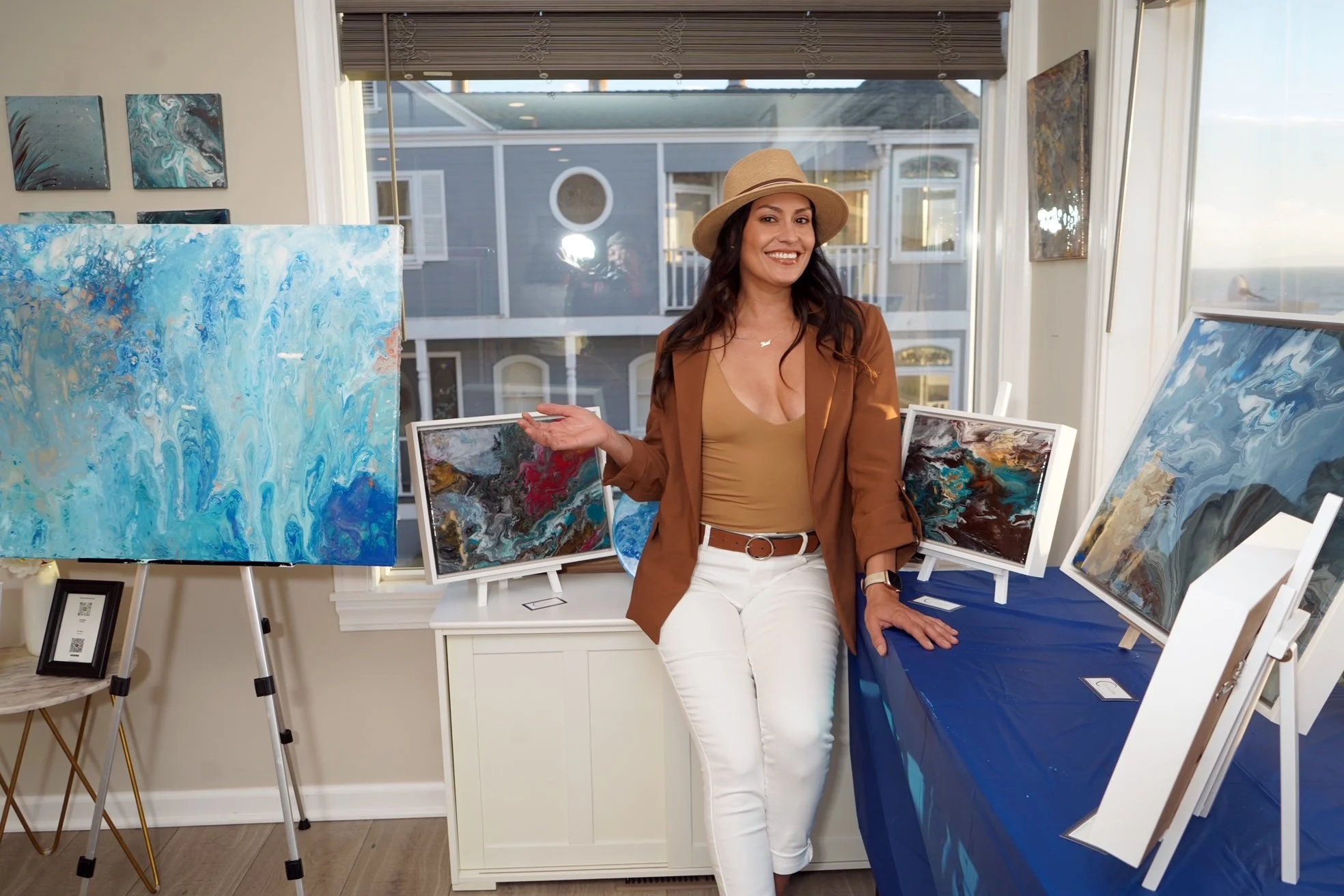 Soft opening for Q’s Beach Shop in Manhattan Beach, showcasing J.Meza’s acrylic paintings for the first time with some of her pieces focusing on a beach theme. Beautiful turnout full of champagne, appetizers and great energy. For more information on Q’s Beach shop located in Manhattan Beach, CA. please visit www.qsbeach.com.